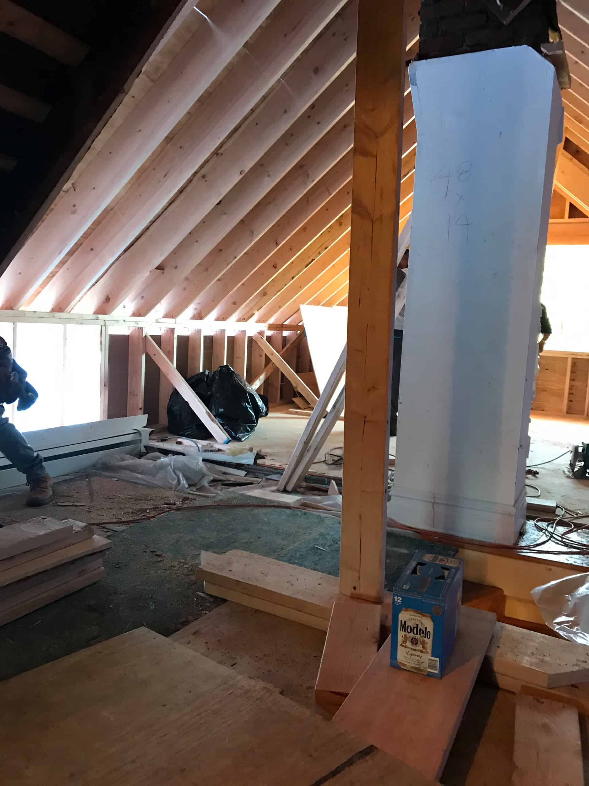 - Reframed some of the roof rafters.