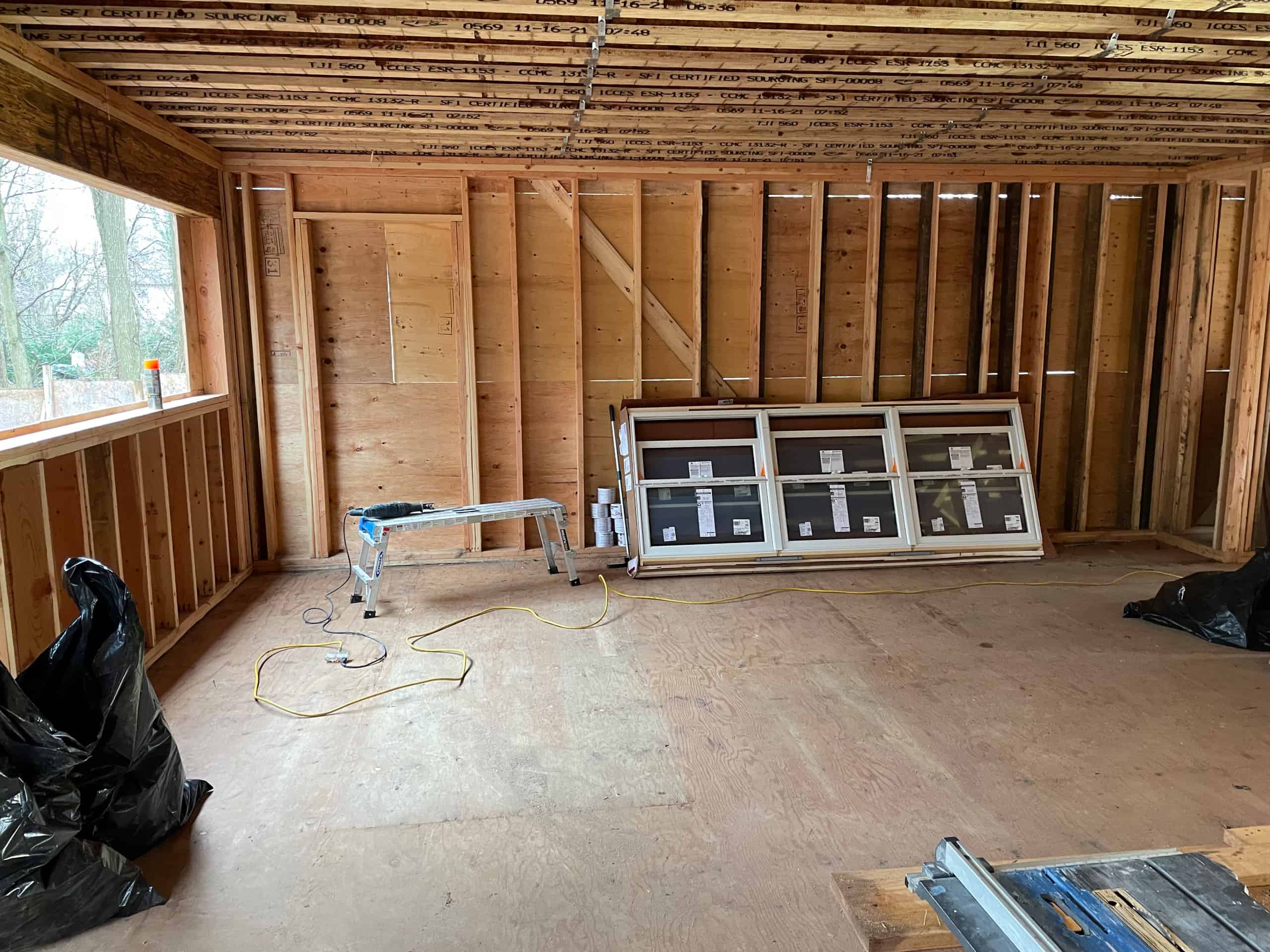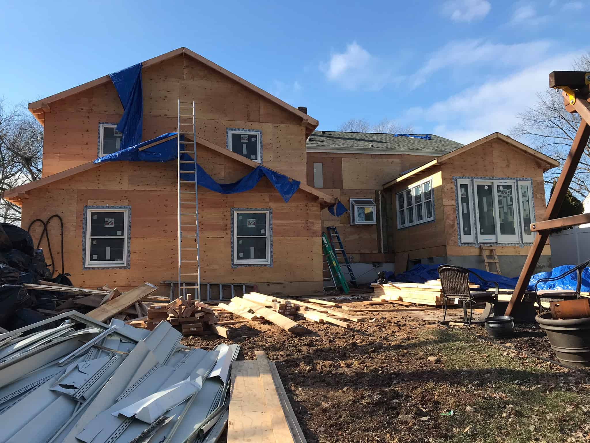 - Installed new exterior plywood sheeting with syrofoam board for added insulation