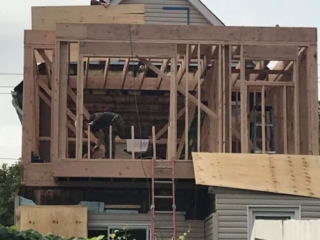 I was contacted by HOUZZ.COM for this project and worked with the homeowner and her family. By law and Code we worked with a Architect and Engineer with a set of plans to rebuild the structure. Here is what we did: