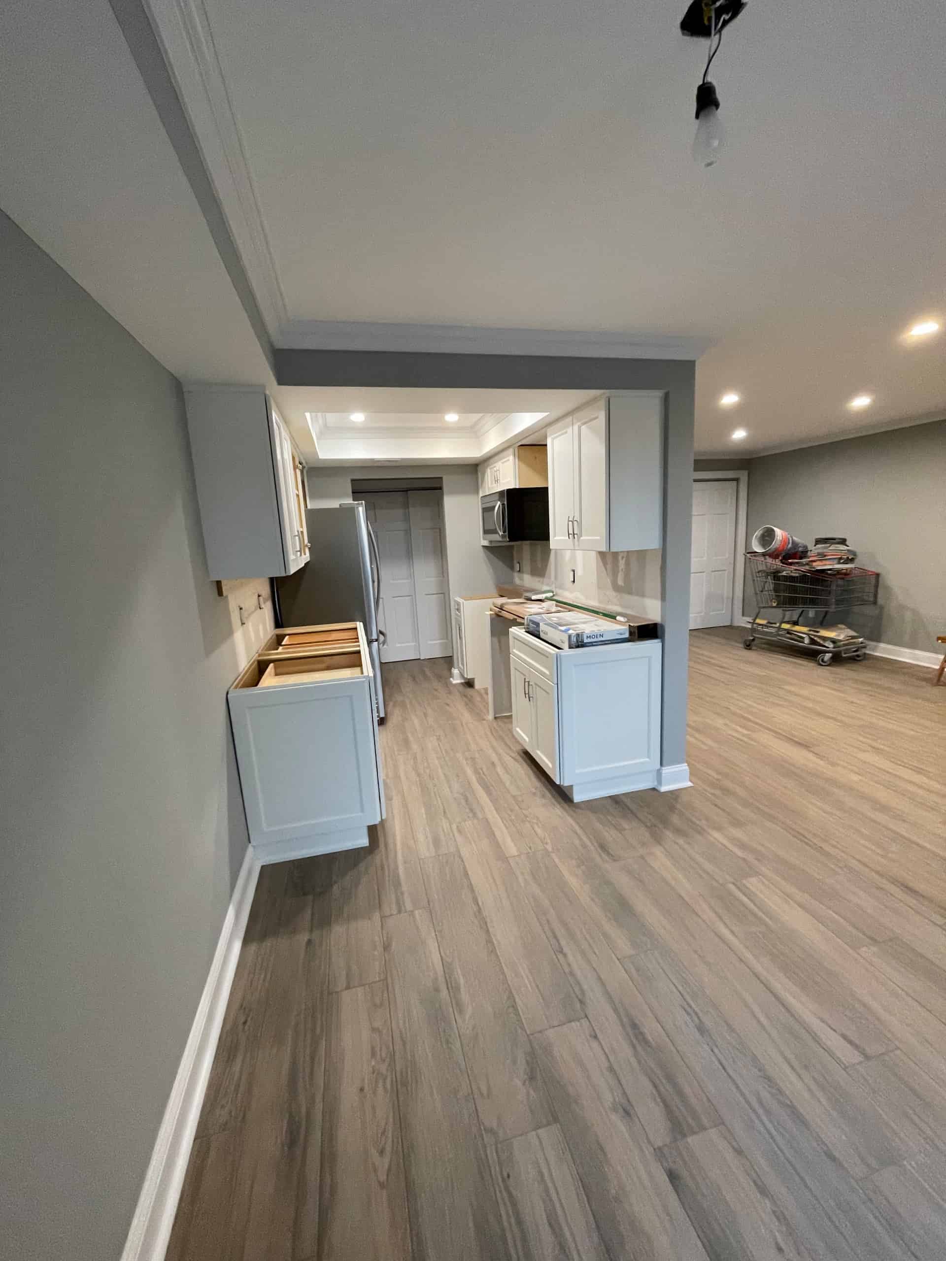 - Moved plumbing to accommodate the design for the kitchen