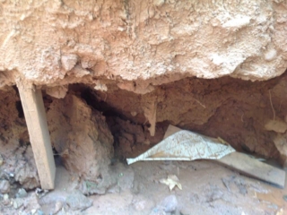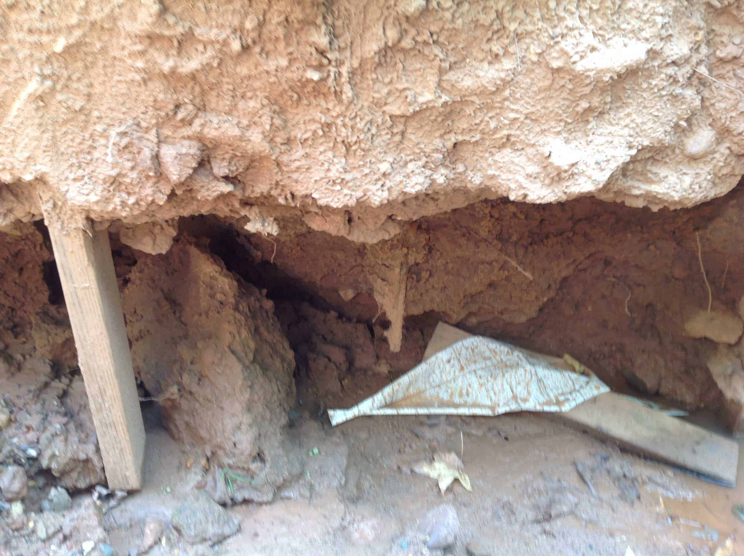 - Roof was absent, and parts of the foundation were exposed